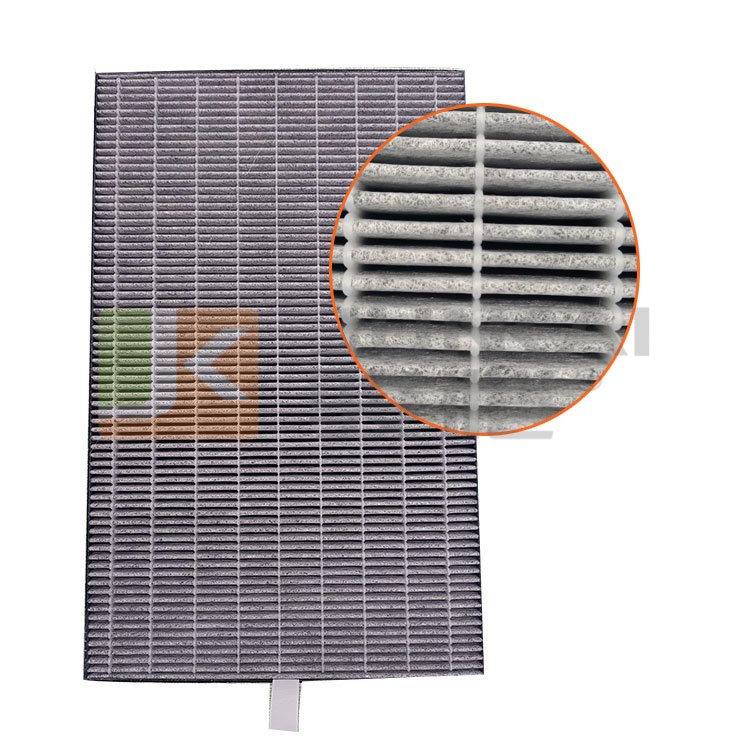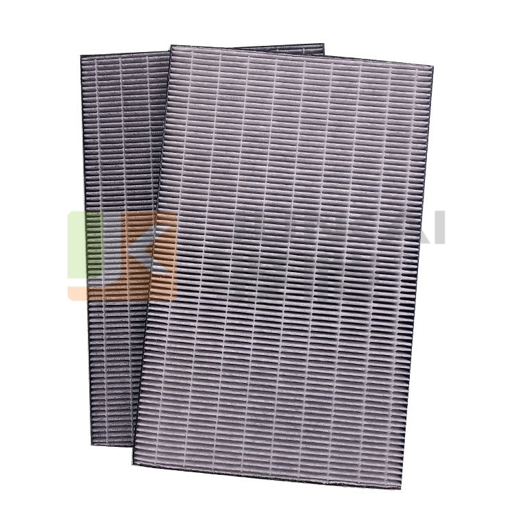 板式折疊夾碳布過濾器,使用熔噴+活性炭顆粒材料,除塵除味,節(jié)省安裝空間,更換安裝方便。