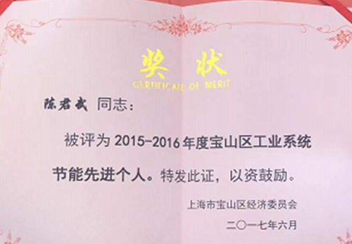 4.公司堅(jiān)持安全生產(chǎn)、注重節(jié)能減排,曾經(jīng)通過 “安全生產(chǎn)標(biāo)準(zhǔn)化”企業(yè)認(rèn)證,并獲得過寶山區(qū)工業(yè)系統(tǒng)節(jié)能先進(jìn)個(gè)人榮譽(yù)。